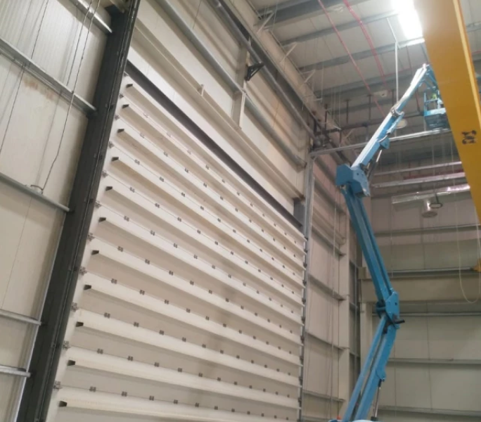 Ворота состоят из энергоэффективных сэндвич-панелей толщиной 45 мм, сопоставимых по теплоизоляции с 60-сантиметровой кирпичной стеной. Конструкции обеспечивают комфортный микроклимат для персонала, позволяют сэкономить на отоплении объекта.