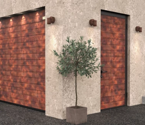 Воротный профиль AG/77, высокая защита от взломацвет: золотой дуб, 3700×2700 мм, с автоматическим управлением, встроенный монтаж, защитный короб 45°