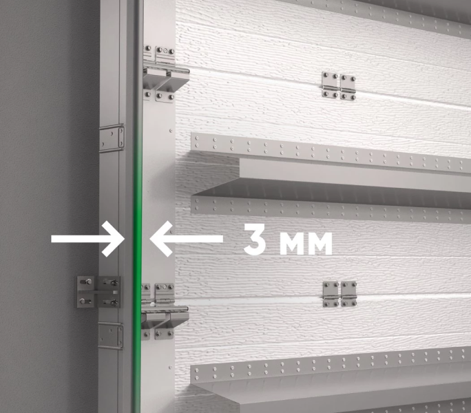 По периметру ворот устанавливаются морозостойкие EPDM-уплотнитель с двумя эластичными лепестками. Данное решение повышает герметичность конструкции. Воздушная камера между лепестками обеспечивает дополнительную теплоизоляцию. Уплотнитель EPDM быстро восстанавливает форму после нагрузки, не впитывает влагу.