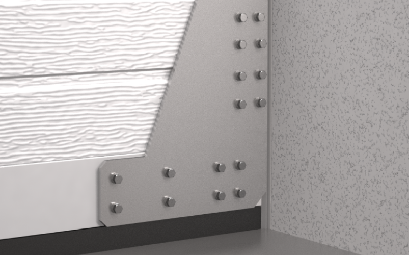 Усиливающая стальная пластина с наружной стороны для дополнительной надежности крепления элементов полотна к панели.