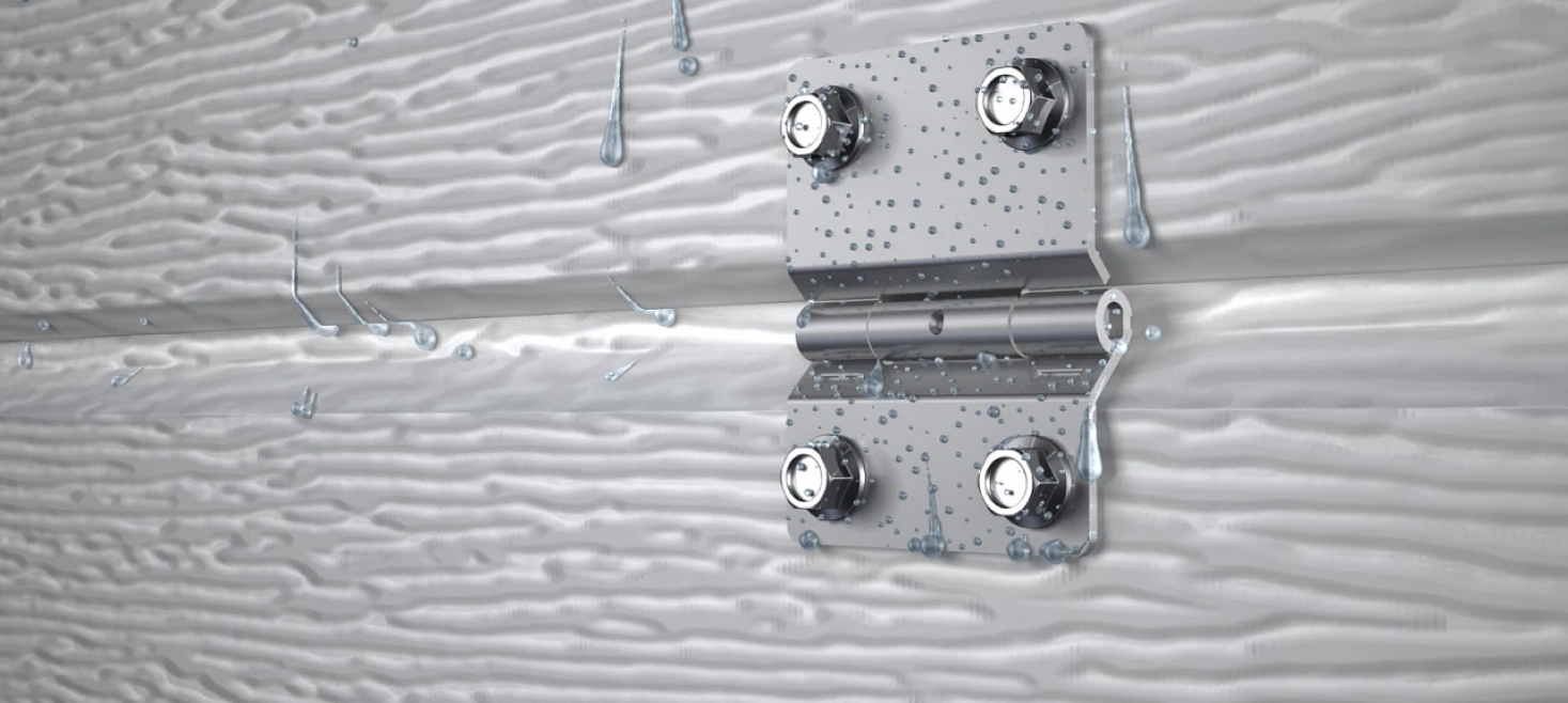 Сэндвич-панели имеют замкнутый контур. Внешние и внутренние металлические листы соединяются между собой в верхней и нижней части панели, образуя замок, с помощью винтов, проходящих через четыре слоя металла. Благодаря этому дверное полотно способно сохранять свой первоначальный вид в течение многих лет.